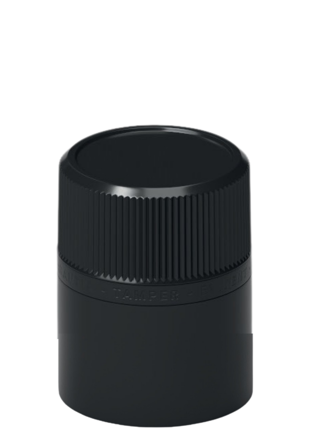 Su diseño cilíndrico y el acabado negro ofrecen una imagen premium y homogénea en lineal, compatible con líneas artesanas o industriales. Si buscas un tapón Guala DOP con vertedor y rosca para botella con boca Guala, este modelo en plástico PET combina ligereza, resistencia y una estética sobria y elegante.