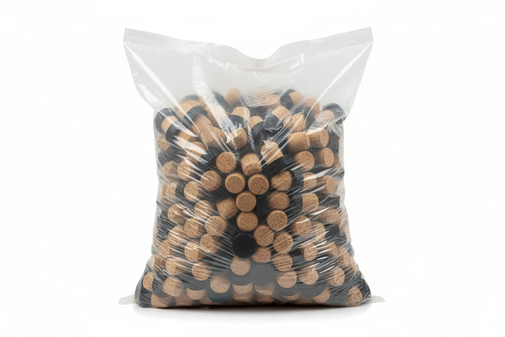The cork cap with black plastic head, of measures 29x19.15 mm Ø, is an efficient and practical solution for the manual closure of glass bottles, without the need for specialized equipment. Its ergonomic design allows simple insertion and safe adjustment, guaranteeing an effective seal that protects the integrity of the content. The plastic head provides a comfortable grip and an elegant aesthetic finish, ideal for quality presentations. This type of closure is particularly suitable for small or artisanal productions, where versatility and ease of use are essential.
