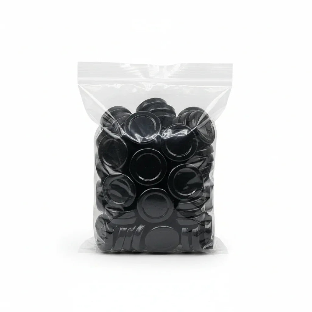 El negro funciona especialmente bien con etiquetas minimalistas, fondos blancos, diseños kraft, gamas “gourmet” y líneas premium. Si tu objetivo es elevar el conjunto, esta tapa ayuda a crear una estética coherente y profesional. Además, al ser un cierre pequeño, el impacto visual se percibe como detalle “cuidado”, algo que el cliente asocia con calidad. En tarros de regalo, el contraste negro + vidrio es un clásico que siempre se siente moderno.