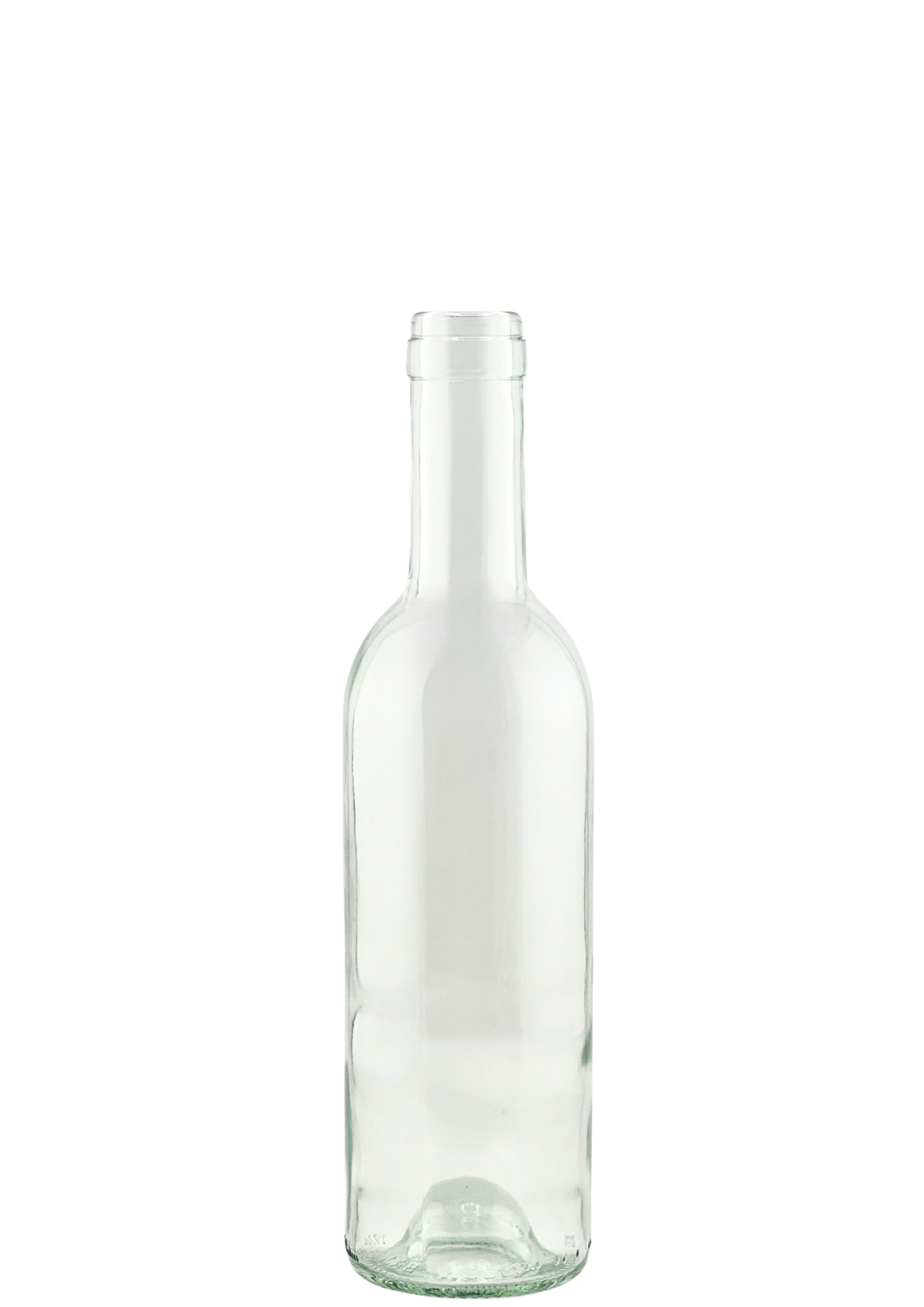 Botella de Cristal Bordelesa 375 ml – Blanca (Transparente) | Boca Corcho