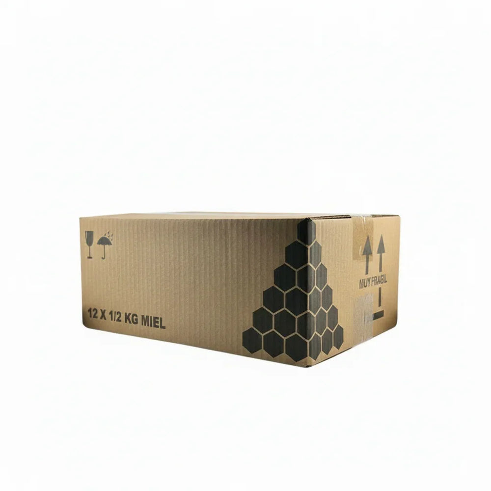 Caja de cartón 12 tarros Miel 1/2 kg