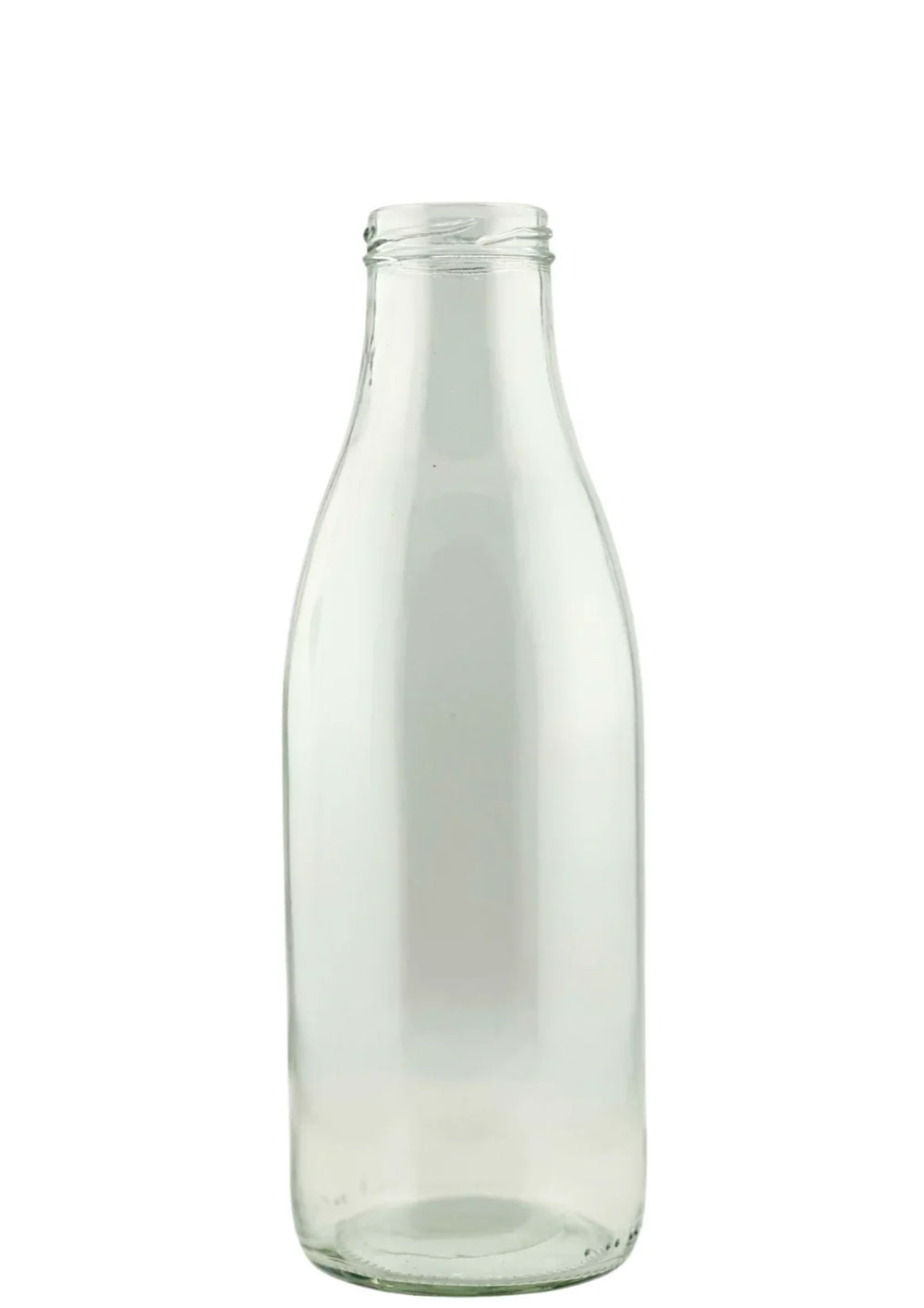 El formato palet de la Botella de Cristal Fraicheur 1000 ml (TO 48) está diseñado para productores de bebidas que necesitan volumen, homogeneidad dimensional y coste por unidad optimizado sin renunciar a la imagen premium del vidrio. Su cuerpo cilíndrico facilita el etiquetado 360°, la fotografía de catálogo y el flujo estable en línea; el vidrio blanco (transparente) aporta una presentación limpia que realza color y textura de zumo, leche, batidos, agua y bebidas funcionales. Con boca Twist-Off 48, trabaja con cápsulas estándar para lograr sellado hermético y vacío consistente cuando se respetan par de cierre y curva térmica.